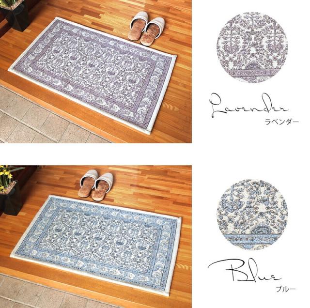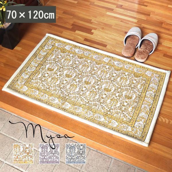 玄関マット 北欧 マット 室内 屋内 ミーサ 70×120cm 洗える 滑りにくい 滑り止め 花柄 イエロー 黄色 ラベンダー ブルー 青 風水 ゴブラン風シェニール