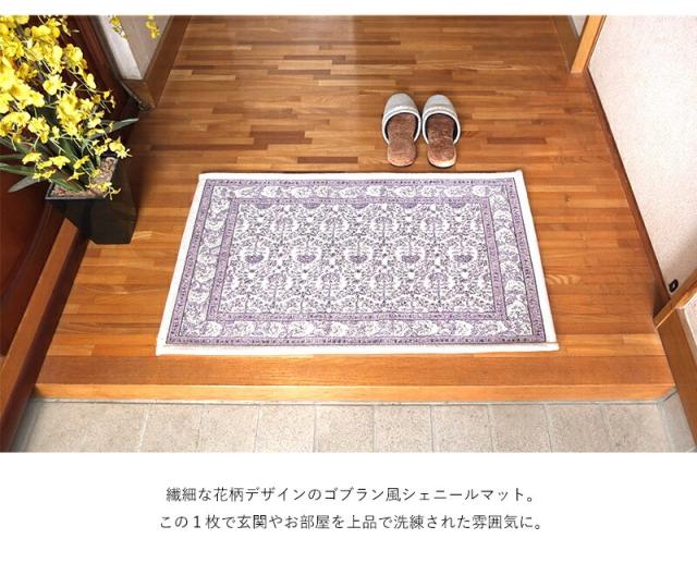 ゴブラン風シェニール シェニールマット シェニール 玄関マット 室内 屋内 洗える 花