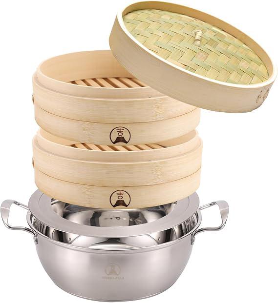 【吉冨士工芸】竹せいろ 21cm 2段蓋付き IH対応鍋付き 蒸し器 中華 せいろ セイロ専用シート20枚付 天然竹 蒸し野菜 小籠包 ★★送料無料★★