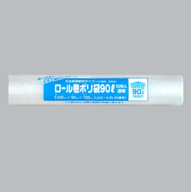 【直送/代引不可】ロール巻ポリ袋 LDロール35-90 透明 20本