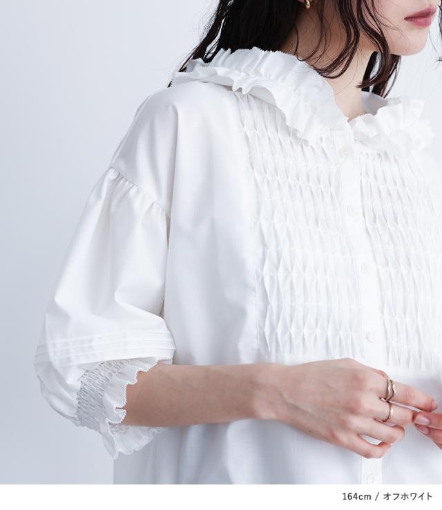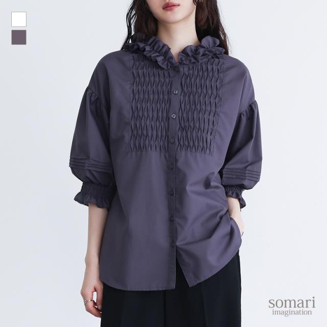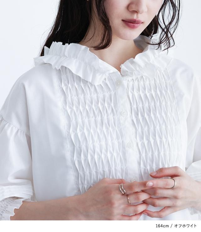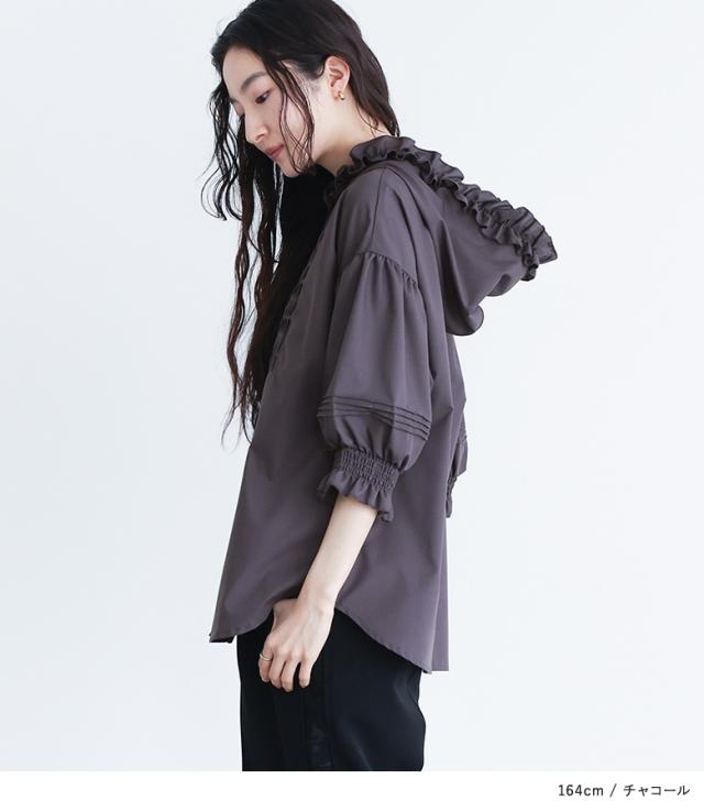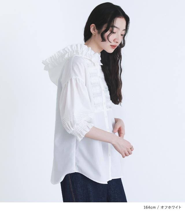 【TP】シャツ・ブラウス プルオーバー ボタンシャツ 前開きシャツ 羽織 フード付き フーディー ネックフリル 七分袖 パフスリーブ ぽわん袖 バルーンスリーブ バルーン袖 ボリューム袖 ミディ丈 ミドル丈 ドロップショルダー 無地 レイヤード 重ね着 おうちで洗える カジュアル シンプル ナチュラル マニッシュ キレカジ セレカジ フェミニン ガーリー 可愛い系大人可愛い お洒落可愛い 大人カジュアル Sサイズ Mサイズ Lサイズ LLサイズ 3Lサイズ XLサイズ フリーサイズ ぽっちゃり 体型カバー 大きいサイズ プラスサイズ 10代 20代 30代 40代 50代 60代 低身長 高身長 女子会 通勤 通学 お買い物 ショッピング お出掛け 旅行 おしゃれ お洒落 トレンド 流行 somari imagination ソマリイマジネーション osharewalker おしゃれうぉーかー[ID]13tm072[somari imaginationフリルフードピンタックブラウス]