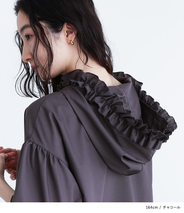 | staff:Z/155cm B79 W65.5 H86 【普段着用】 Tops: S/M Bottoms: S/M | 【フリーサイズ】 袖丈:ちょうどひじが隠れる位 着丈:ヒップがちょうど隠れる位 腕周り:ゆったり バスト:ゆったり 全体:ゆったり フリルですが、フード付きでカジュアルなデザインなので着回ししやすそうです。 |