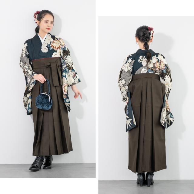 袴セット 卒業式 大学生 小学生 レディース 女の子 モダン 花柄 グレー 藍色 白 菊 紅葉 絵羽柄 袴4点セット 和装 着物セット 販売 購入 送料無料