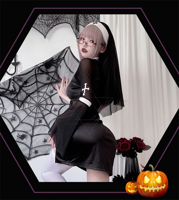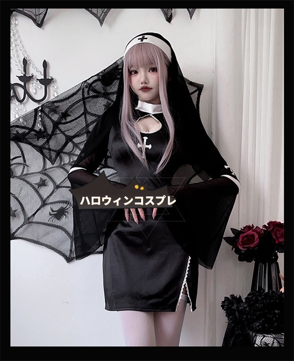 ハロウィン コスプレ 大人 ハロウィン大人用 コスプレ衣装 吸血鬼 修道女 コスチューム 舞台衣装 ワンピース ブラック レディース hr005x6x6z7