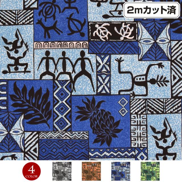 生地 ハワイ柄 ハワイアン柄生地(約113cm巾x2mカット済) シーチング生地 L47S30 [M便 1/2] 布 ハワイ柄生地 柄生地 ハワイアンプリント生地 インテリア生地 パウスカート
