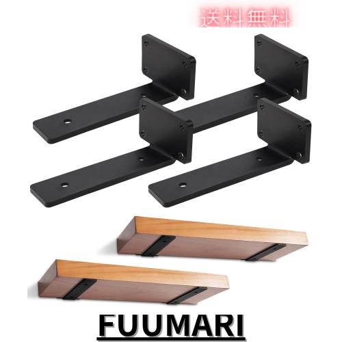 DRERIO 棚受け金具 20cm 4個セット 隠し棚受け アイアン 高耐荷重 頑丈 目立たないブラケット l字金具 棚板 金具 最大荷重90KG 棚 壁掛け