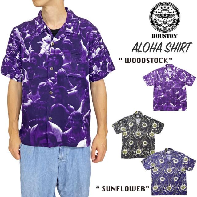 Houston ヒューストン アロハシャツ (WOODSTOCK) (SUNFLOWER) 半袖シャツ 柄物 ひまわり 観衆 ライブ フェス タウンユース イベント 夏 サマー ウッドストック 40920 40921 ゆうパケット1点まで送料無料
