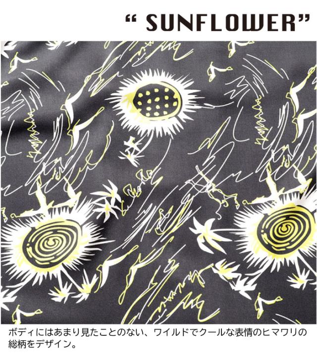 ボディには、60年代のフェスの観衆の写真をモチーフに、ハーフトーン調にてデザインされた『ウッドストック』。 あまり見たことのない、ワイルドでクールな表情のヒマワリの総柄をデザインした2パターンを展開!