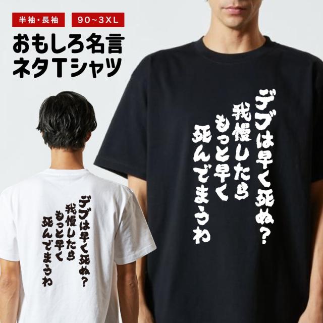 おもしろTシャツ メンズ レディース キッズ 半袖 長袖 面白いTシャツ ネタTシャツ 名言 迷言 デブは早く死ぬ?我慢したらもっと早く死んでまうわ