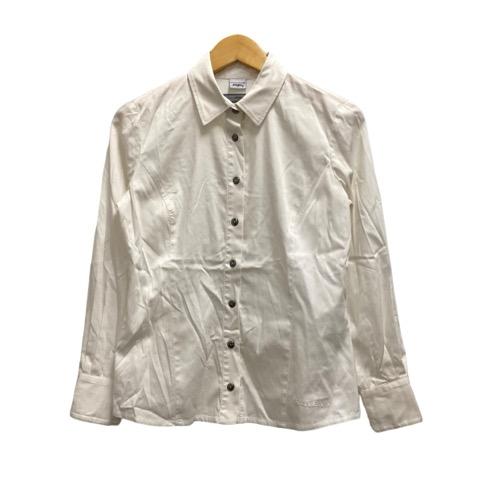 【中古】クリッツィア KRIZIA ジーンズ jeans シャツ 長袖 レギュラーカラー 無地 ロゴ刺繍 6 オフホワイト 銀 シルバー レディース