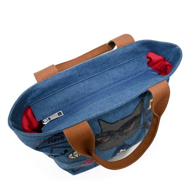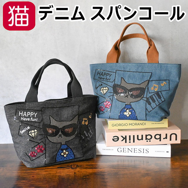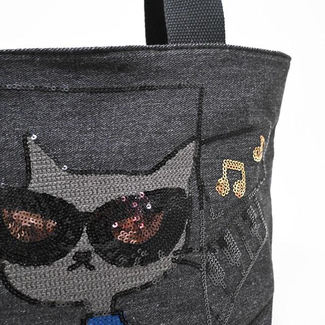 ハンドバッグ 猫 猫柄 トートバッグ 手提げバッグ デニム グラスキャット レディース トート 軽量 ねこ ネコ 猫雑貨 猫グッズ かわいい