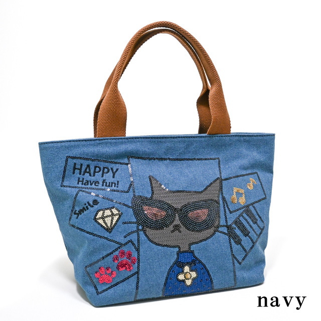 大人気の「グラスキャット」シリーズから デニム素材のトートバッグが登場しました。