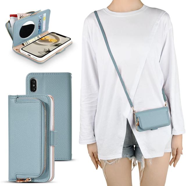 ?支払い時に手間がかからない、素晴らしい収納スペース!? ファスナーポケット付き、カード7枚ぐらい収納できます。クレジットカードやお札、小銭、レシート、カギなどの小物を持ち歩けるスマホケースです。日帰り旅行の必要最小限のニーズを満たせます。メイク直しミラー付き、外出先でさりげなくお化粧チェックできます。