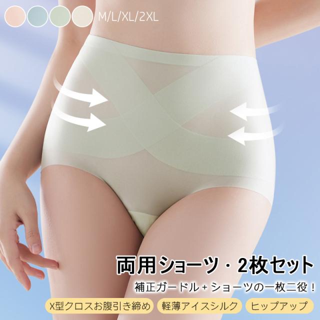 【2枚セット】ショーツ レディース ハイウェスト ガードルショーツ ヒップアップ お腹引き締め ガードル 接触涼感 補正下着 補正ショーツ 下着 ガードル シームレスショーツ シームレス パンティ パンツ 美尻 美腹