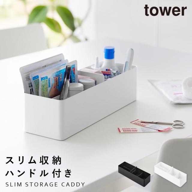 ハンドル付きスリム収納ボックス タワー 山崎実業 tower 収納ボックス 32cm 持ち手付き プラスチック デスク おしゃれ モノトーン ホワイト ブラック 1854 1855