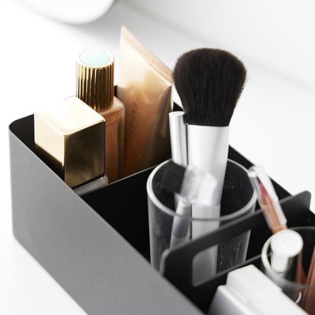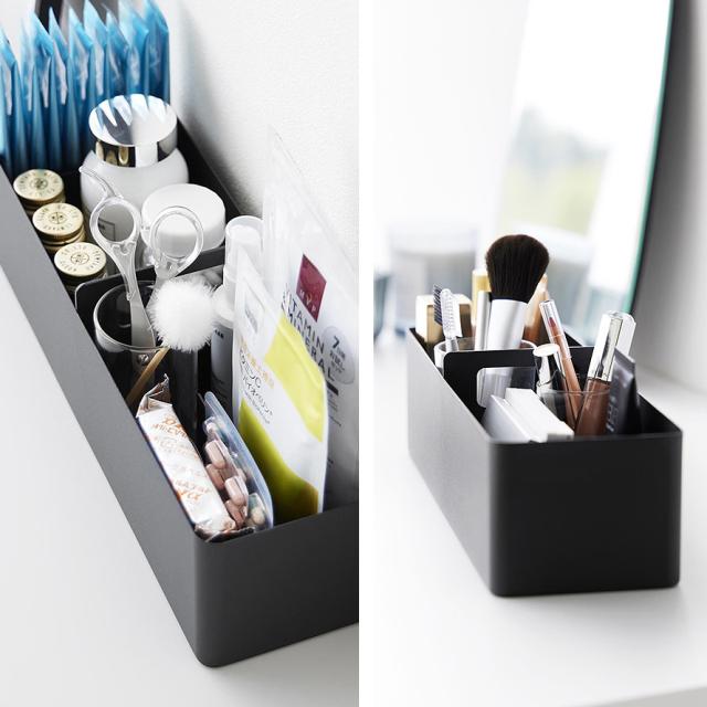 2個使用すれば、基礎化粧品とメイクアップ用品を分けて収納できるのでドレッサー前もすっきり。
