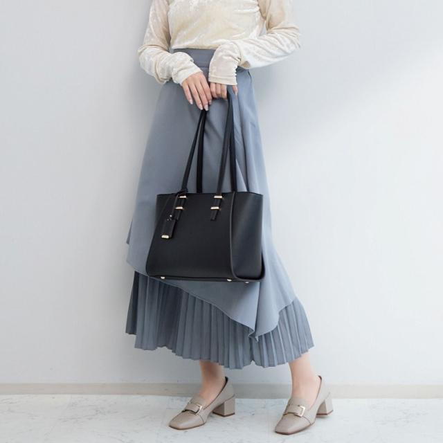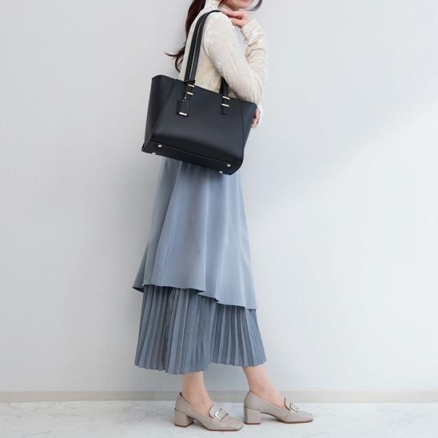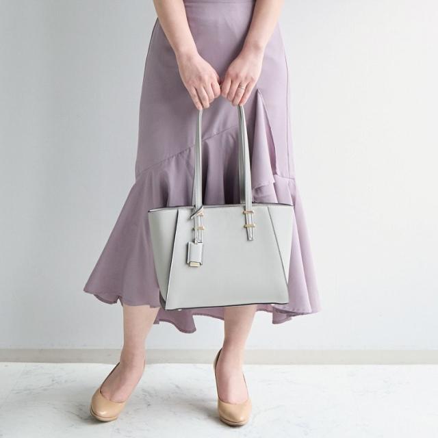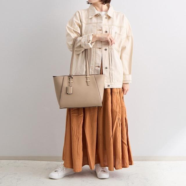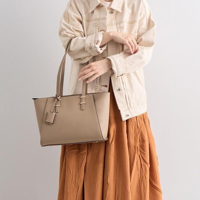 トレンド感のあるロングハンドルがポイントのトートバッグ。
