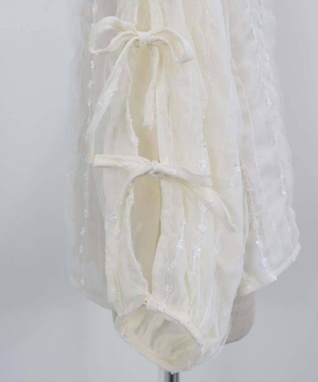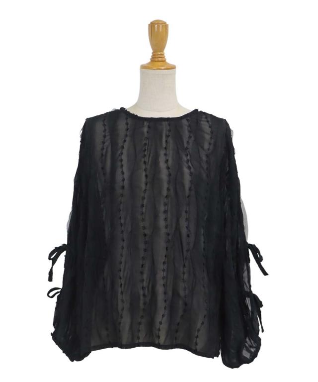 袖にリボンを施したチュールシフォンブラウス