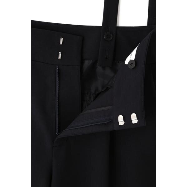 同素材のジャケットとのセットアップはオフィスシーンにも活躍します。付属のサスペンダーを活かしたカジュアルなスタイリングもおすすめです。