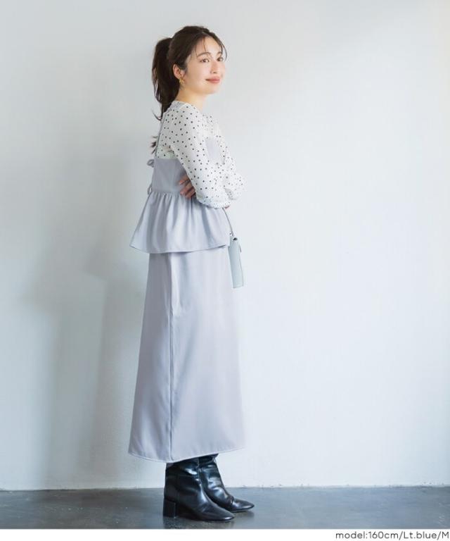 360度抜かりない美シルエット、女性らしさと抜け感を兼ね備えたペプラムキャミワンピース
