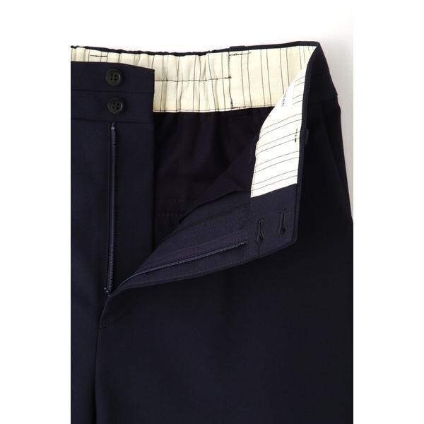 ベルト下側をバイアスに切り替えた、ヒップ周りすっきりのノータックセミワイドパンツです。