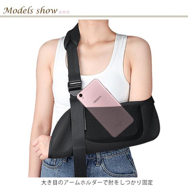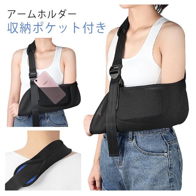 アームホルダー アームスリング 腕吊り サポーター 腕用 サポーター アームリーダー 大人用 子供用 三角巾 腕つり 骨折 アームホルダー ポケット付 子供用 男女兼用 左右兼用 バンド ブラック 腕 送料無料