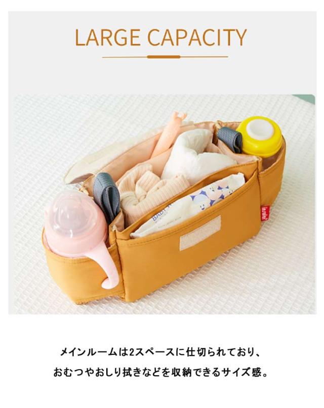 | 赤ちゃんのケアグッズをひとまとめに!ベビーカーに吊り下げることができて、お出掛けに便利なベビーカーバッグ。 ベルトを持ち手に変えて、ハンドバッグに変身。2WAY仕様でベビーカーを使わなくなった後でも使える。 見た目よりもたくさん入る収納力!フタつきなので、たくさん入れてもすっきり見え☆オムツ、哺乳瓶、おしりふきに着替えなど、お出かけに必須な物をまとめて収納。 お店に入るときは、バッグを取り外してそのまま持ち歩きができる!面ファスナー仕様なので、ペリっと剥がすだけの簡単チェンジ。 メインルームの仕切りは面ファスナー仕様なので、取り外しOK。荷物をしっかり仕分けたり、ワンルームで大きく使ったり。整理整頓しやすい作り。 サラッとしたナイロン素材を使い、汚れや水をはじく撥水加工済み。お手入れも拭き取るだけでOK。(※完全防水ではありません。) 温かみのあるバイカラーをラインナップ。パパ・ママが持ちやすい、シンプルな無地デザイン◎ | |