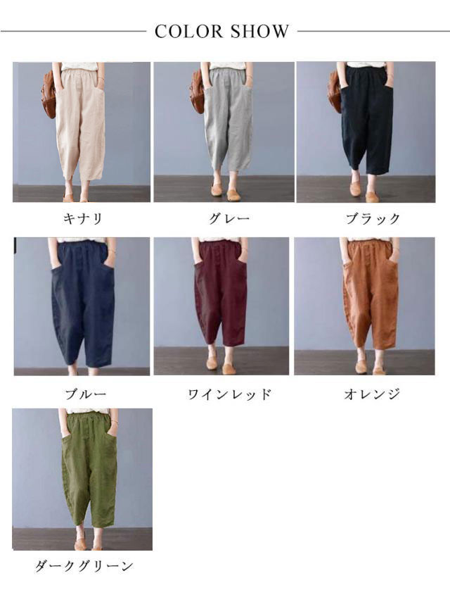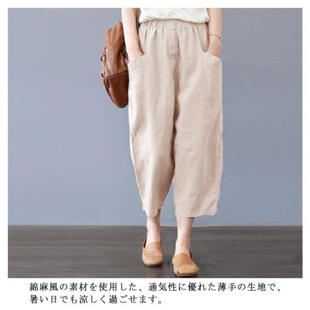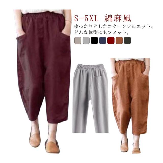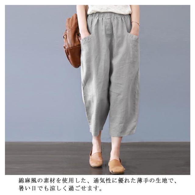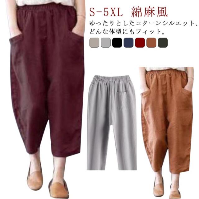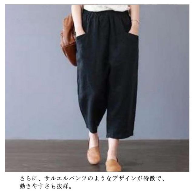 綿麻サルエルパンツ 綿麻 パンツ リネン イージーパンツ ワイド パンツ 麻 コットンリネン ウェストゴム レディースファッション ポケット付き 大きいサイズ 無地 綿麻風 カジュアル 母の日 ギフト プレゼント おしゃれ 送料無料