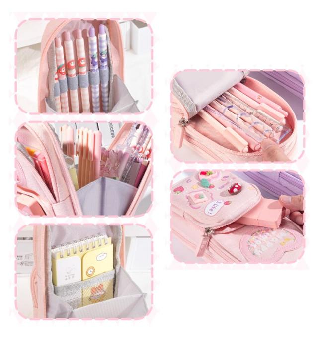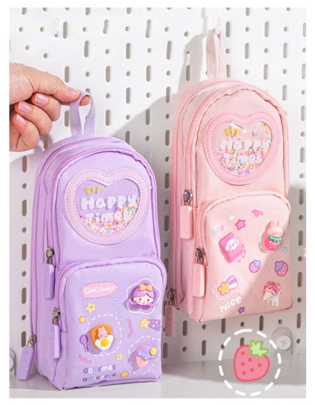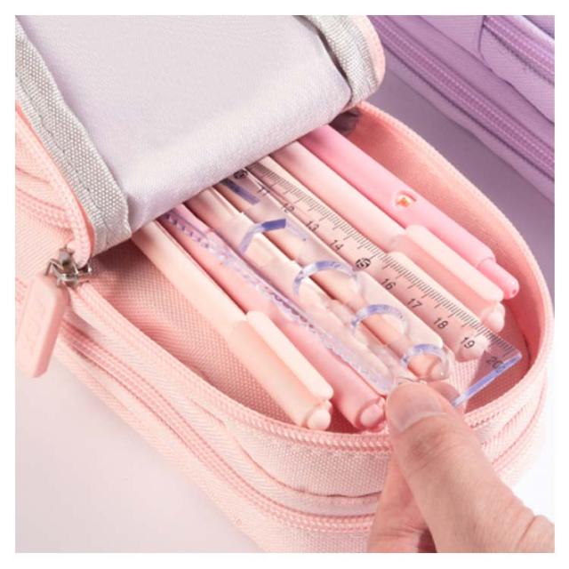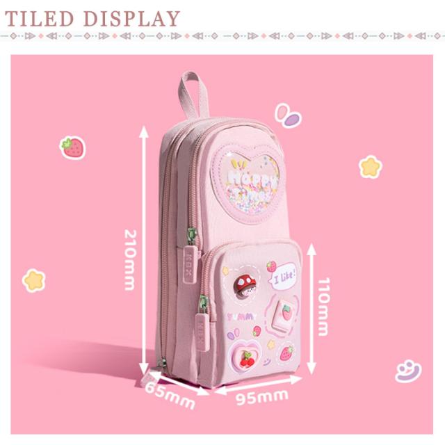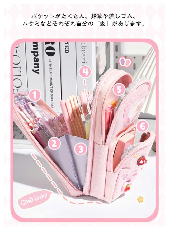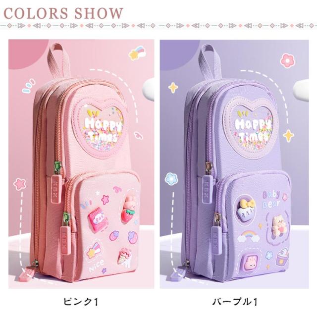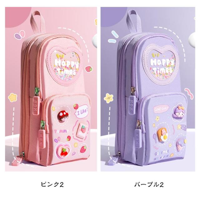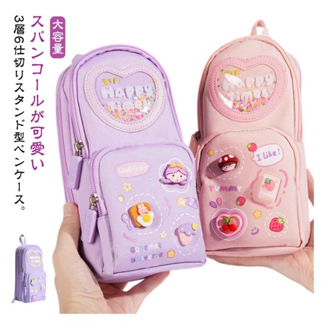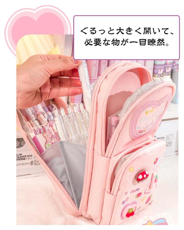 ペンケース 小学生 中学生 筆箱 縦型 3層 大容量 自立 スタンド型 ふでばこ キャンバス生地 女の子 可愛い ペンタテ ペン縦 タテヨコ ポーチ 女子 社会人 撥水加工 入学祝い プレゼント ギフト 送料無料