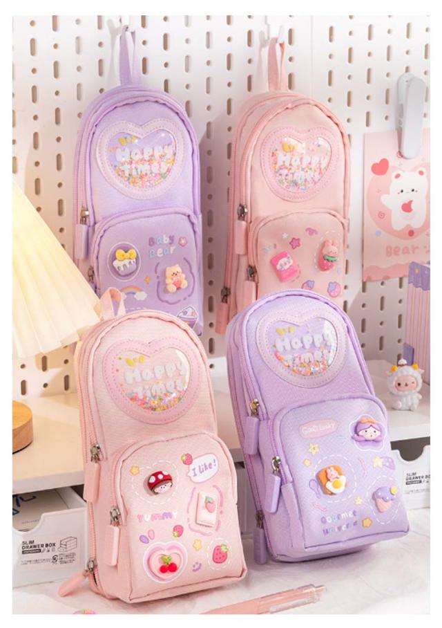 | 3層6仕切りスタンド型ペンケース。 ポケットがたくさん、鉛筆や消しゴム、ハサミなどそれぞれ自分の「家」があります。 ぐるっと大きく開いて、必要な物が一目瞭然。 丈夫な撥水加工キャンバス生地、汚れがつきにくく、お手入れ簡単。 | |