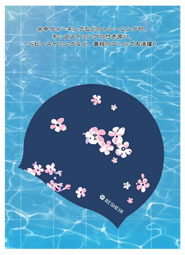 | 素敵な花柄スイムキャップ。 伸縮性抜群なので、髪の毛が長い方でも、まとめて帽子にスマートに収まります。 シリコン素材を用いており、頭にピッタリとフィットするので、水の抵抗を受けにくく、髪が濡れにくいので髪や頭皮を塩素から守ってくれます。 女性らしい美しい花柄デザイン、水泳時間を彩りします。 水中ウォーキングなどのトレーニングや、キッズスイミングの付き添い、ベビースイミングなど、普段のプールで大活躍! | |