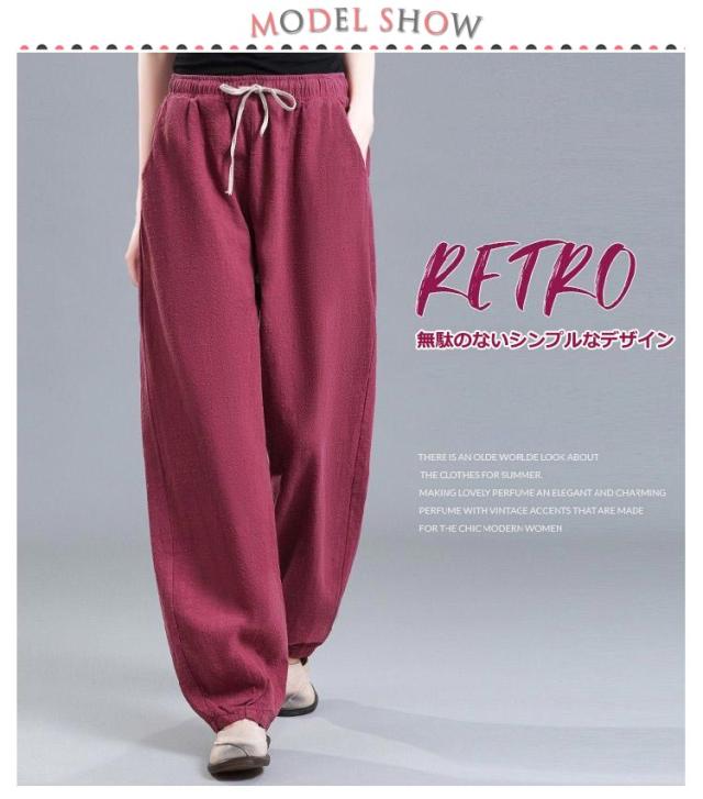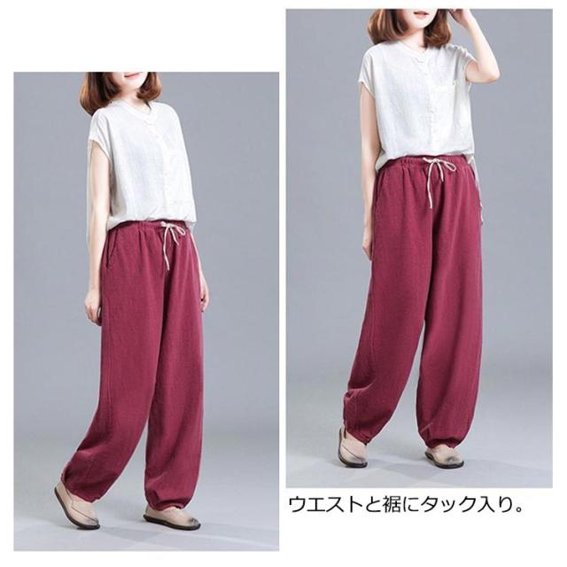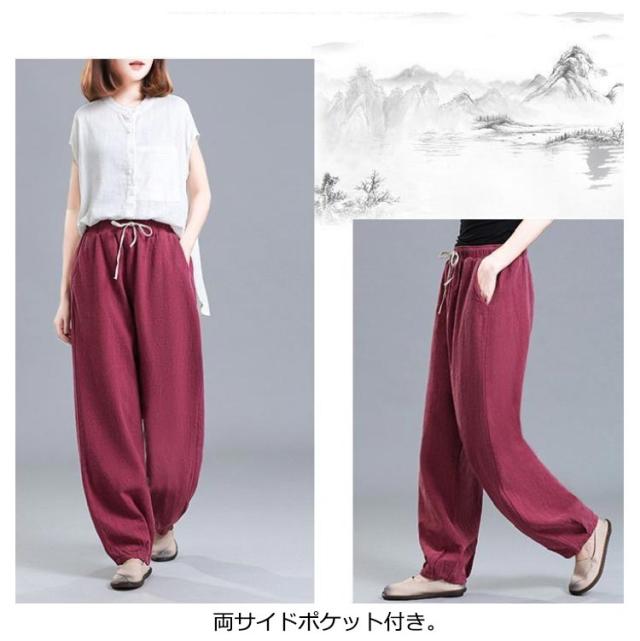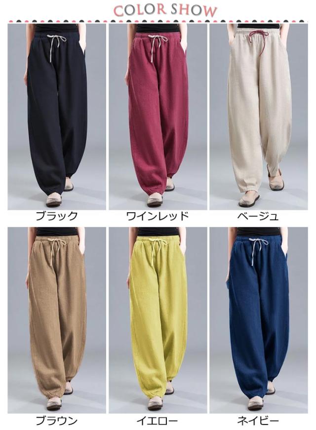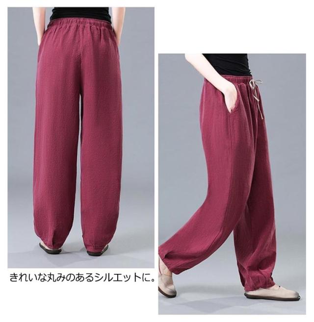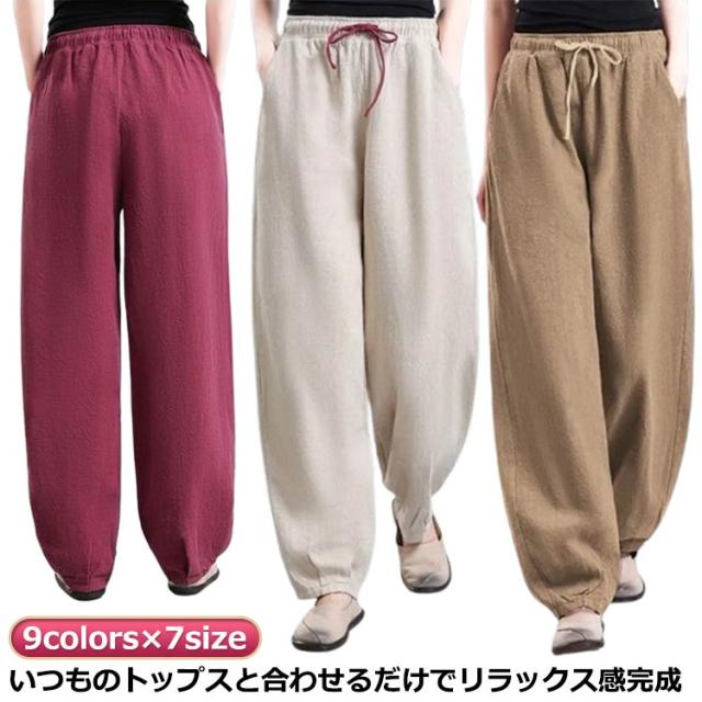 綿麻パンツ 夏 レディース ナチュラル パンツ ウエストゴム 綿 麻 コットンリネン 綿麻 ロング丈パンツ 通気性 快適 美脚 コットンリネンパンツ ロングパンツサルエルパンツ バルーンパンツ レディース 夏 ワイドパンツ リネンパンツ 送料無料