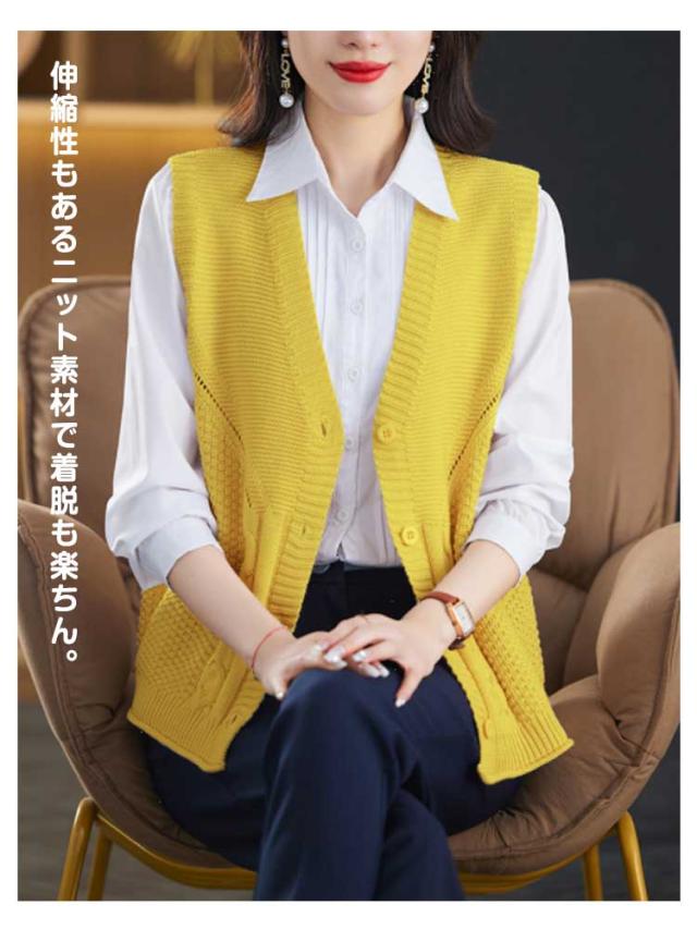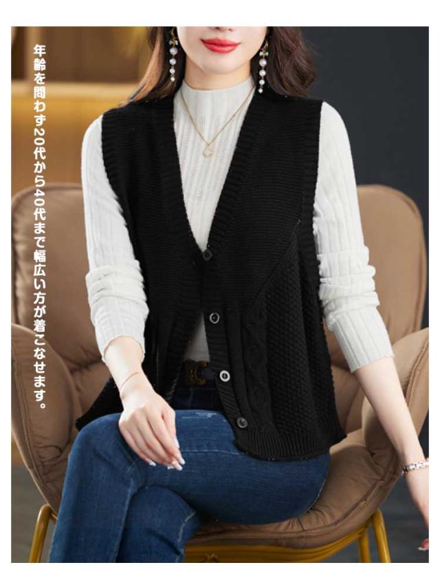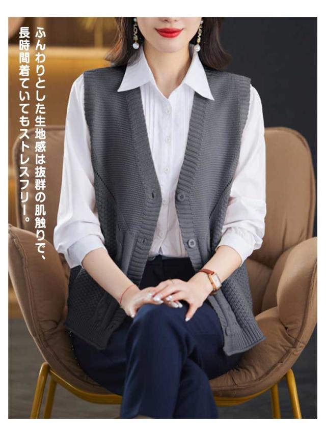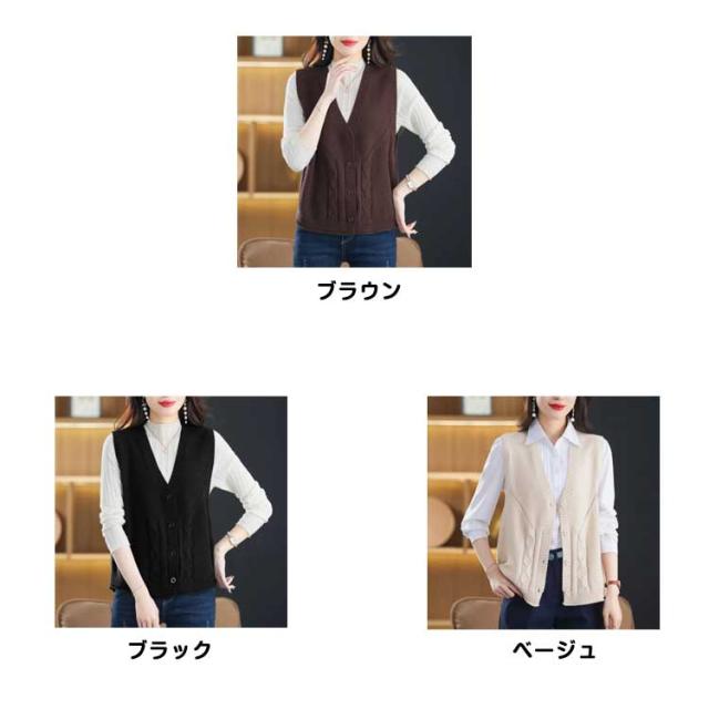 ニットベスト レディース ベスト セーターベスト 秋 冬 春 vネック 前開き 無地 大きいサイズ ノースリーブ 薄手 女子 おしゃれ ボタン ゆったり レイヤード OL 重ね着 オフィス きれいめ カジュアル 通勤