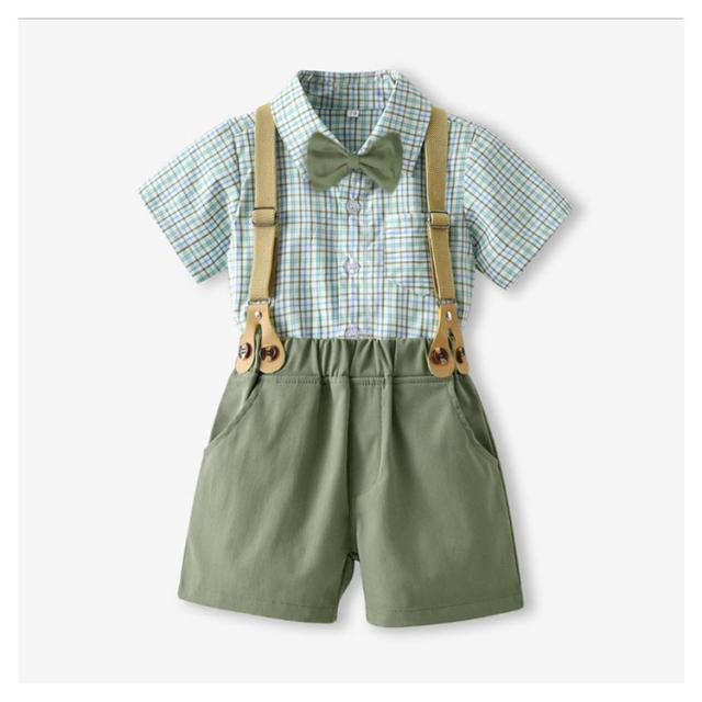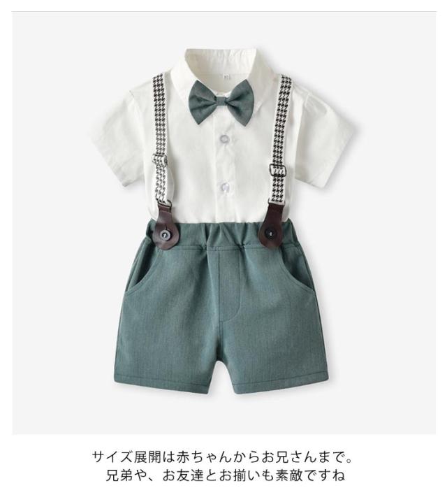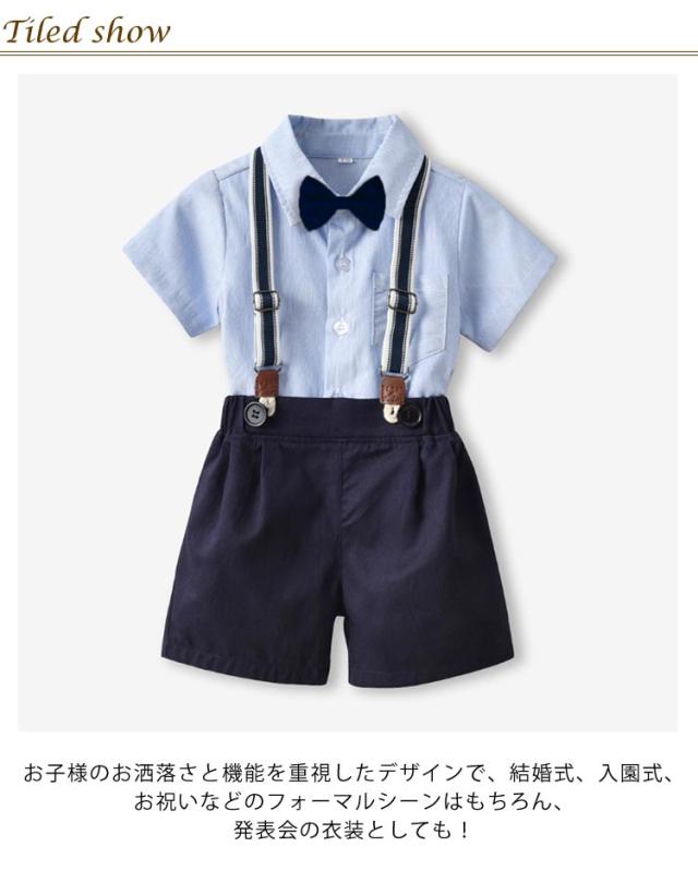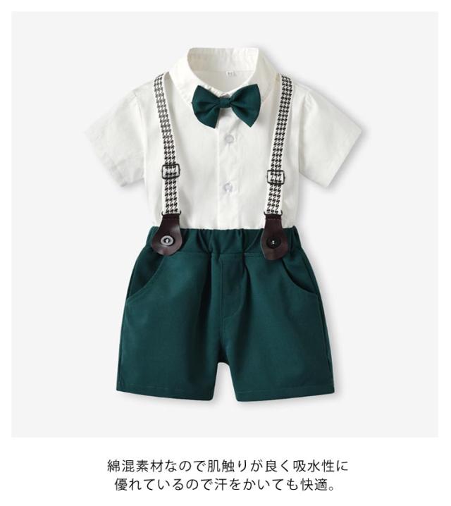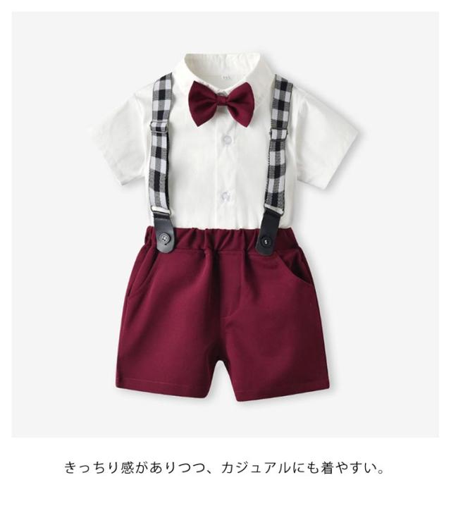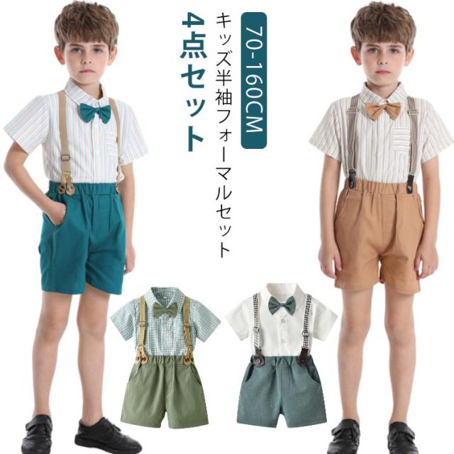 男の子 フォーマル スーツ 結婚式 半袖ワイシャツ 半ズボン サスペンダー 蝶ネクタイ 4点セット 子供 ベビー 半袖 シャツ ハーフパンツ 上下セット 子供服 発表会 70 80 90 100 110 120 130 140 150 160 cm 夏 涼しい おしゃれ ストライプ チェック 赤ちゃん 小学生 幼稚園