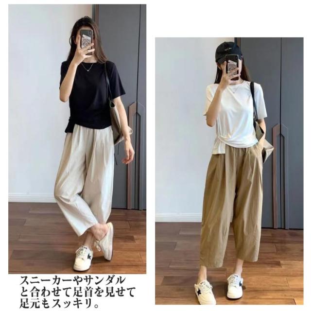 サルエルパンツ クロップドパンツ レディース 九分丈パンツ ワイドパンツ ガウチョパンツ ゆったり タックパンツ 可愛い 夏 涼しい 涼感 アンクルパンツ ウエストゴム シンプル カジュアル 大きいサイズ 無地 きれいめ 春服 夏服