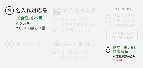 | 表面塗装 | 箸先:漆塗装(すり漆) 持ち手:ウレタン塗装 |