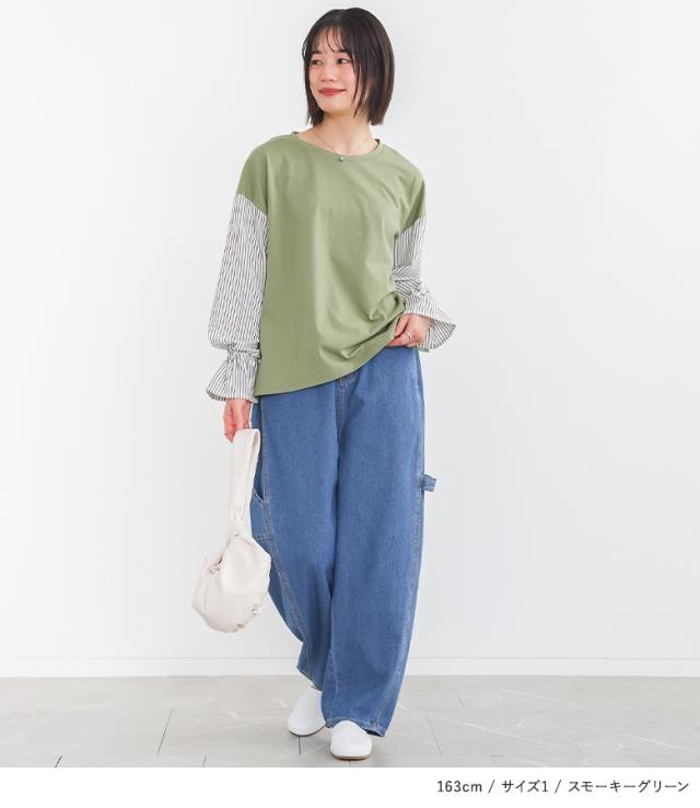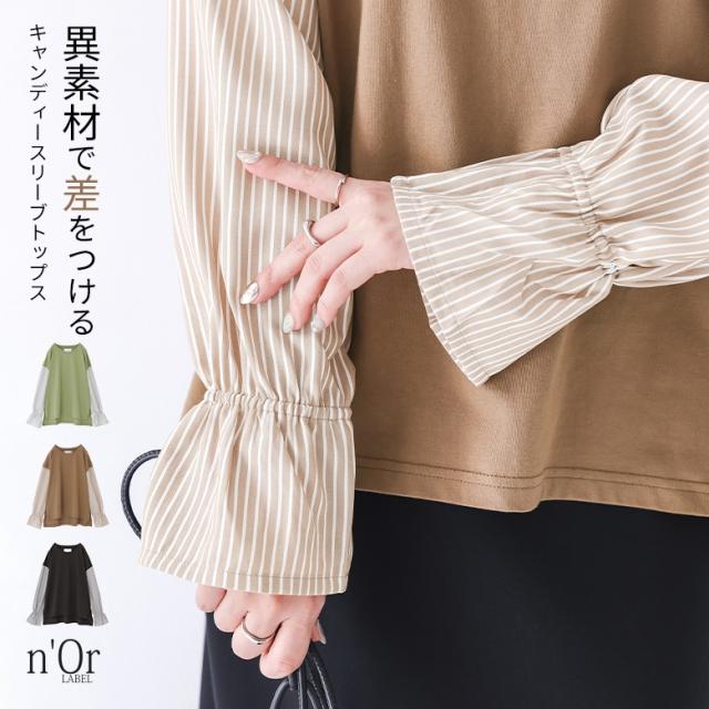 カットソー 長袖 レディース トップス ロンT ブラウス チュニック キャンディースリーブ 異素材 無地 ストライプ柄 綿100% きれいめ オフィスカジュアル フェミニン 大きいサイズ 秋 オシャレウォーカー スモーキーグリーン ブラウン ブラック 紺色 緑 茶色 黒 【TP】 Tシャツ スウェット スエット プルオーバー クルーネック n'OrLABEL ノア—ルレーベル 大人女子 大人可愛い お洒落可愛い 大人カジュアル ベーシック ニュアンス ラフ エフォートレス ボリューム袖 キャンディスリーブ 袖コンシャス ショート丈 ミディ丈 ミドル丈 配色 コットン100% おうちで洗える カジュアル シンプル ナチュラル キレカジ オフィス・ビジネス 上品 Sサイズ Mサイズ Lサイズ LLサイズ 3Lサイズ XLサイズ ぽっちゃり 体型カバー プラスサイズ 10代 20代 30代 40代 50代 60代 女子会 オフィス 通勤 通学 お買い物 お出掛け 旅行 リゾート おしゃれ お洒落 トレンド 流行 osharewalker グリーン くすみカラー スモーキーカラー[ID]13tm06w[n'OrLABEL異素材キャンディースリーブカットソー]