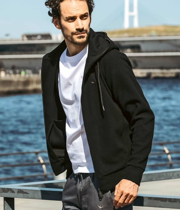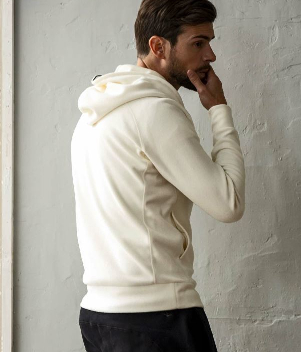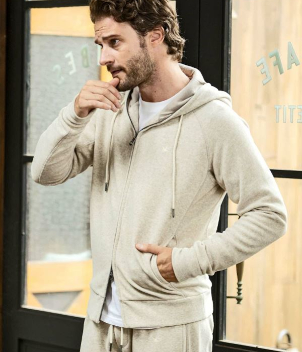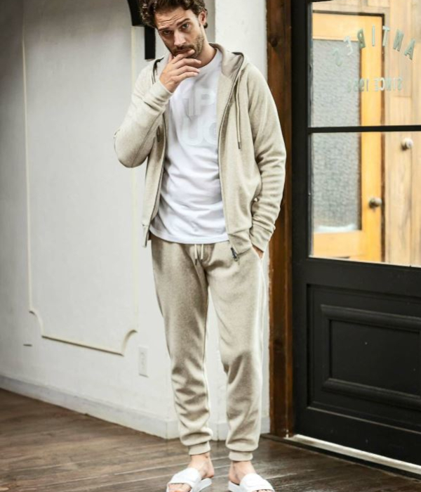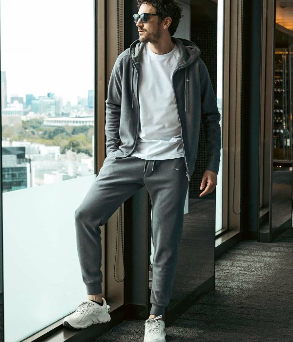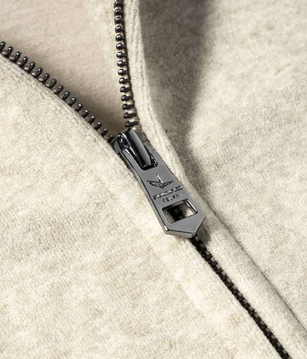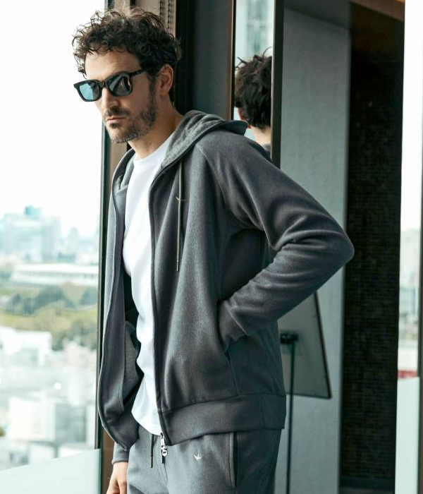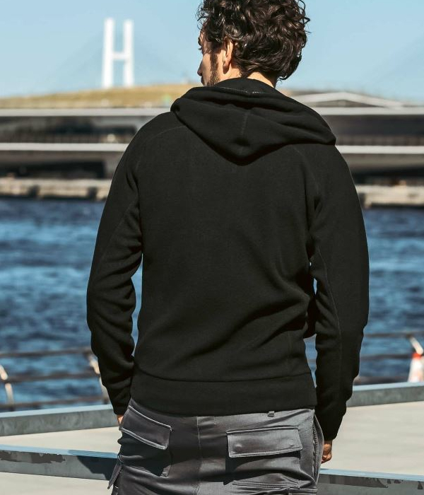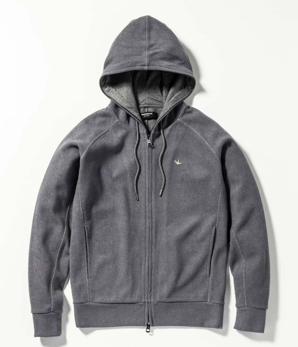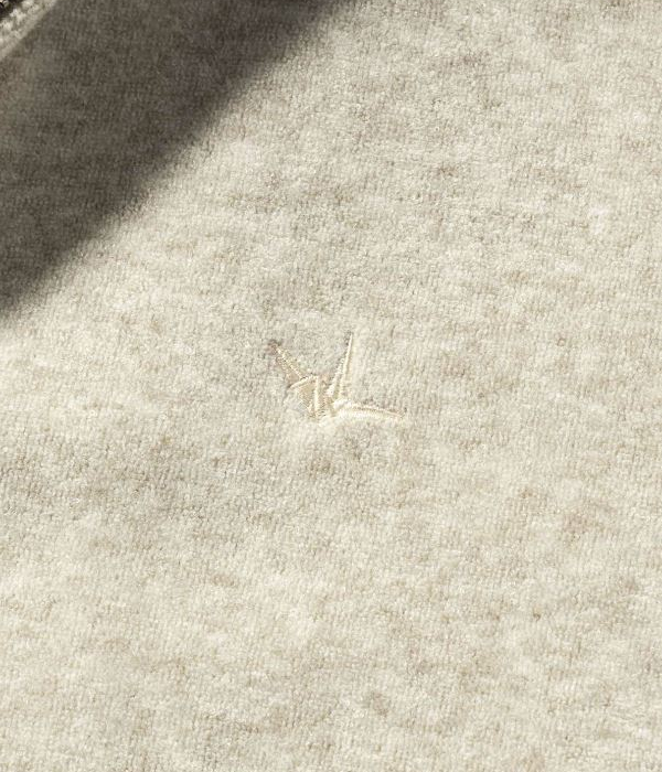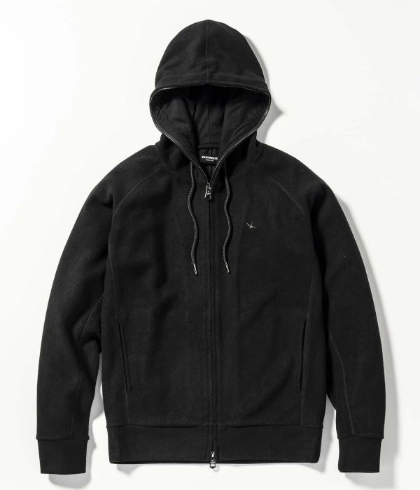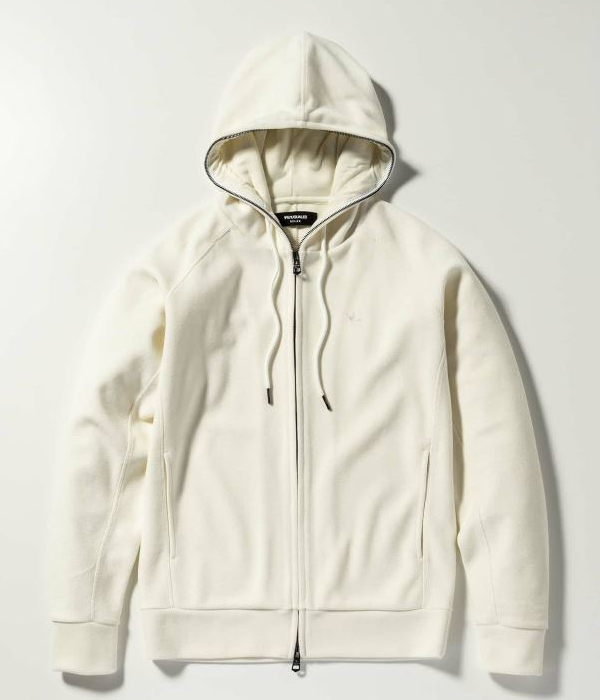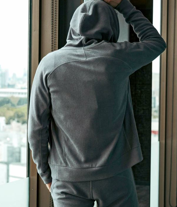 もこもこと起毛した表面感が柔らかな表情を形成するジップパーカー。柔らかな手触りと相俟ってシーズンらしいウォーミーな着心地に。