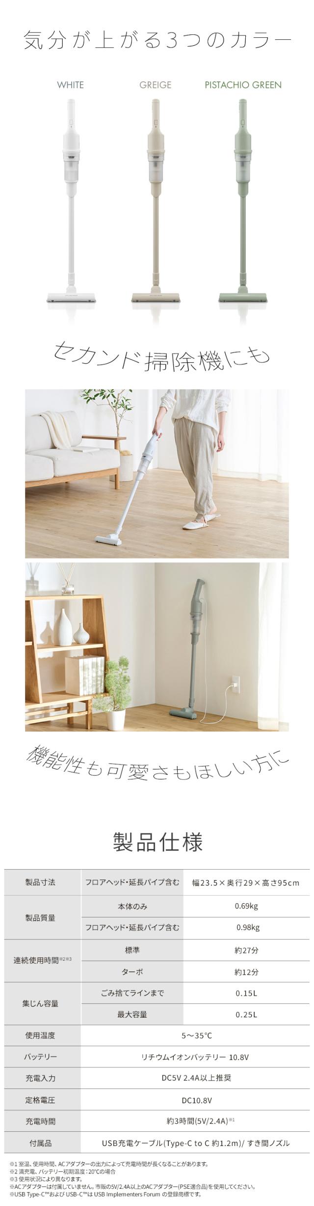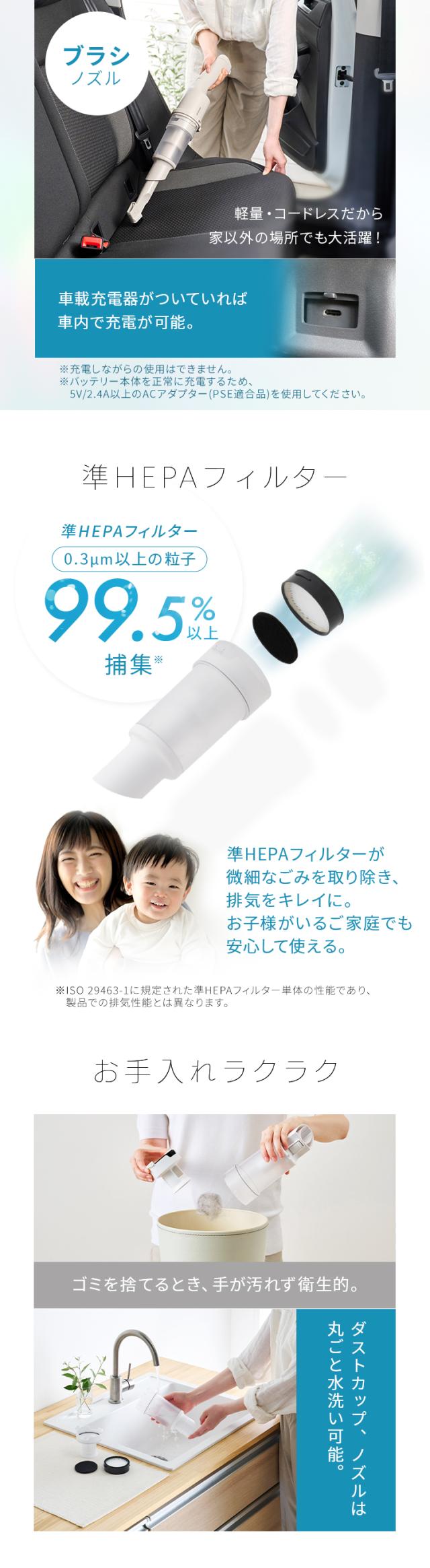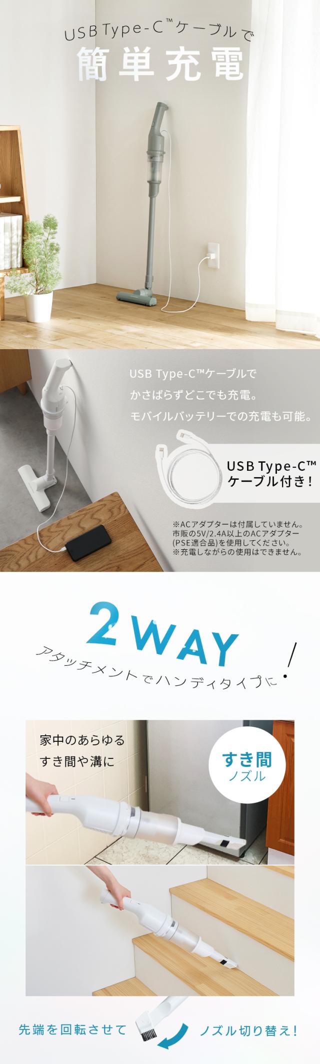 USB充電ケーブル(Type-C to C 約1.2m)、すき間ノズル