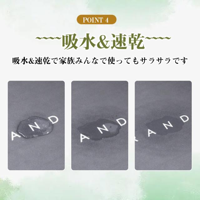 まるで吸い付くような踏み心地ですぐに乾く、家族みんなで使ってもサラサラです。