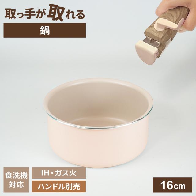 取っ手が取れる ララッテ・トルテ IH対応 着脱用 鍋 16cm RB-3083 | IH ガス火 対応 食洗機対応 片手鍋 本体のみ PFOA フリー ふた別売 オーブン 丈夫 くすみカラー フッ素加工 揚げ物 重ねられる 取り外し かわいい