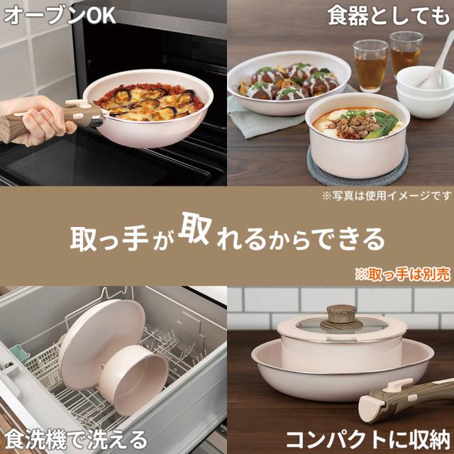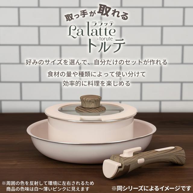 取っ手が付け外しでき、IH・食洗機・オーブン対応のララッテ・トルテシリーズ、着脱用鍋。(専用フタ・着脱ハンドルは別売)