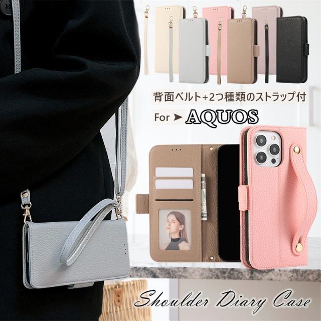 AQUOS シンプルスマホ7 ケース グリップループ付き! スマホケース 手帳型 BASIO active2 ショルダー アクオス センス10 9 AQUOS wish3 sense8 sense7 Sense6S シンプルスマホ6 ケース ベルト付き ハンドストラップ付き 韓国 大人 シンプル 可愛い おしゃれ かわいい 斜めがけ