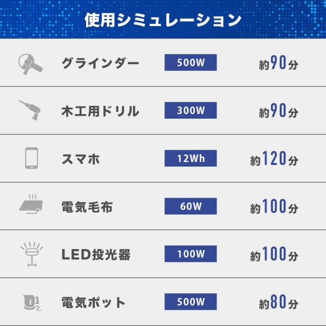 連続運転時間(1/4負荷~定格負荷)-約1.6~1.0h
