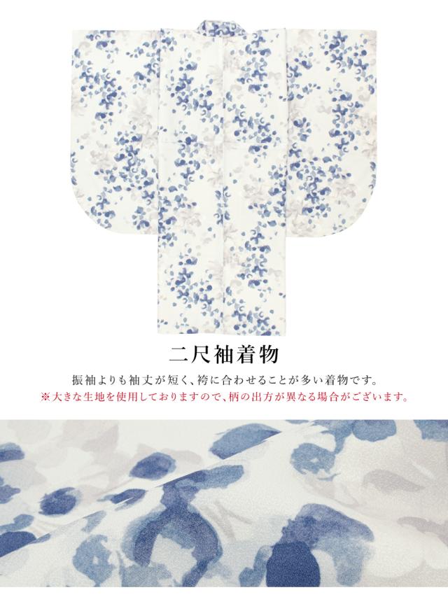 袴セット 卒業式 大学生 小学生 レディース 女の子 モダン 花柄 白 グレー 青 紺 袴4点セット 二尺袖着物 創美苑オリジナル floro 和装 着物セット 販売 購入 送料無料