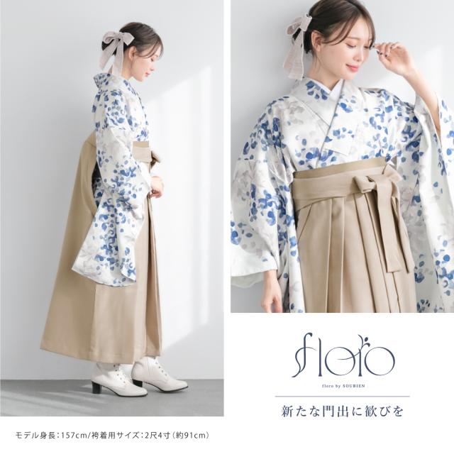 きもの館SOUBIENのプライベートブランド『floro by SOUBIEN』(フローロ)の二尺袖着物を合わせた華やかな袴セットです。