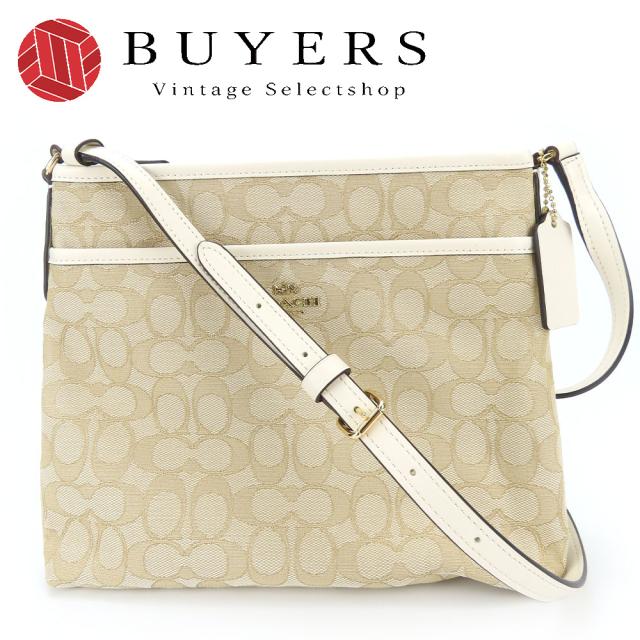 中古 コーチ ショルダーバッグ F29960 シグネチャー キャンバス レザー ベージュ アイボリー ゴールド金具 斜め掛け カジュアル レディース 女性 COACH