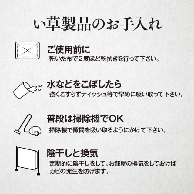い草には空気の自然浄化作用、湿度の調節作用などがあり、汚れにくいという特長があります