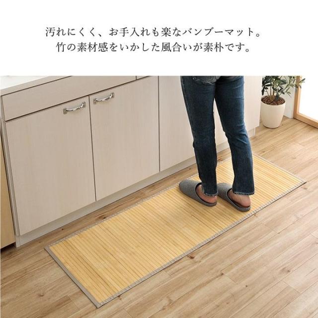 廊下敷き キッチンマット ロングカーペット 80x240cm ローマ 竹ラグ 夏 ひんやり 自然素材 抗菌防臭 お手入れ簡単 汚れにくい