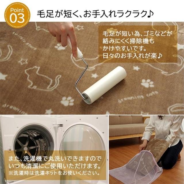 ラグ 洗える カーペット 200x300cm キャット 絨毯 ラグ 猫柄 ネコ柄 アニマル柄 滑り止め 床暖房 ホットカーペット対応